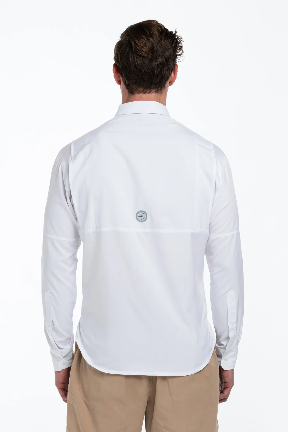 Camisa Tipo Pescador para Hombre color Blanca de la marca Fort Lauder, para tus aventuras al aire libre, camping, playa, pesca, outdoor.