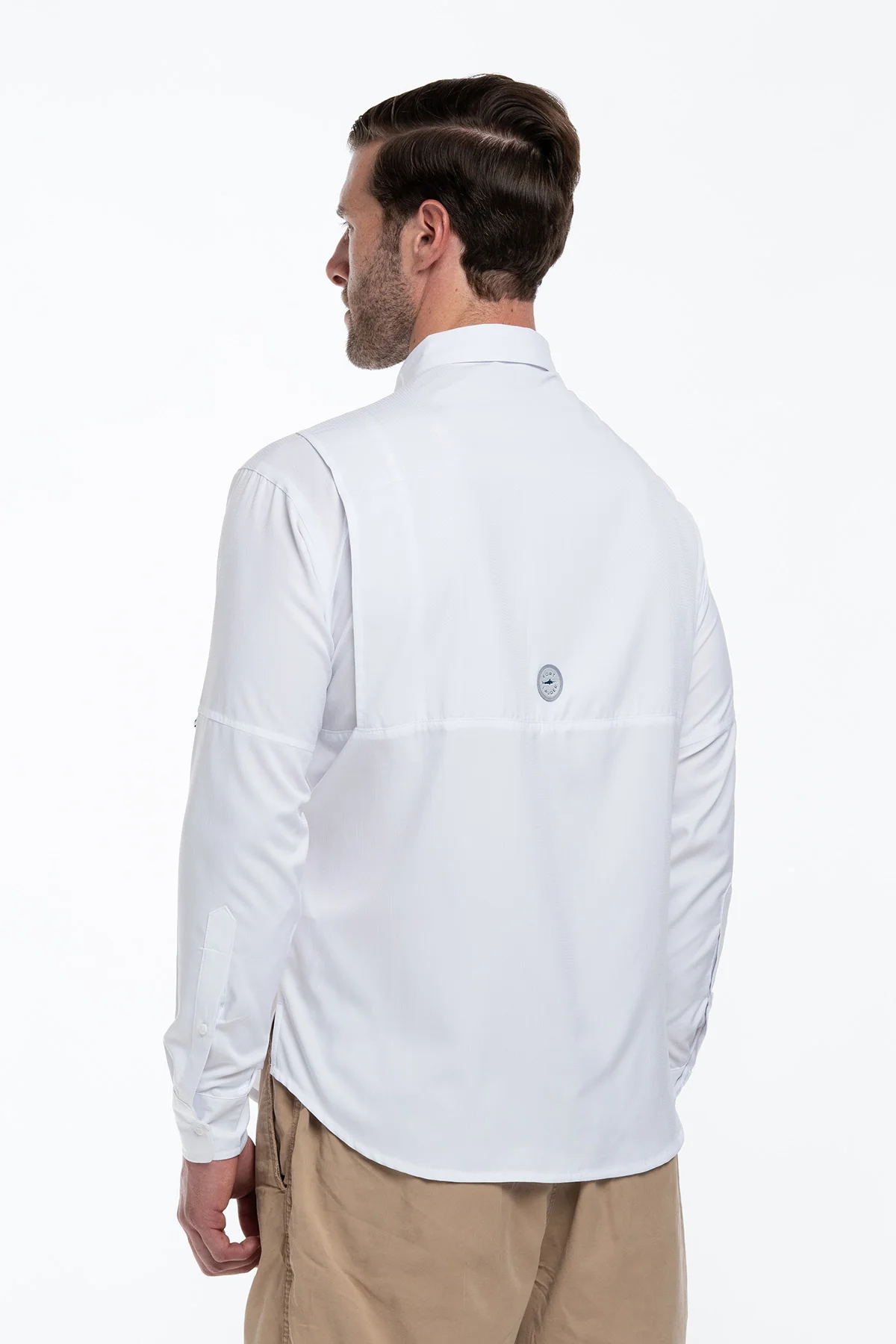 Camisa Tipo Pescador Hombre Manga Larga Blanca Fort Lauder Edición Tigres